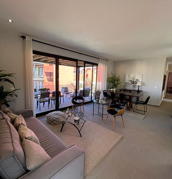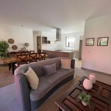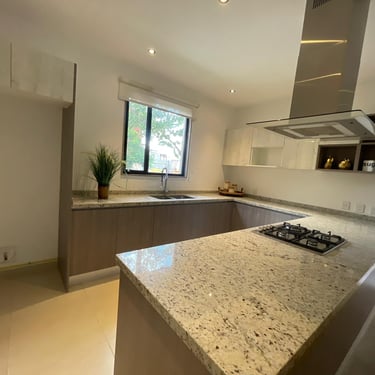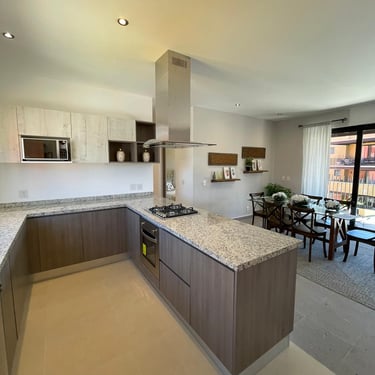 Sala – Comedor, Terraza al descubierto, Cocina Integral, 1 Recámara principal con vestidor, 2 Recámaras secundarias, 2 Baños completos, Lavanderia